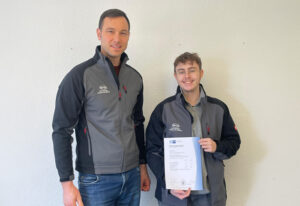 Unser Auszubildender Tim Schenk hat nach 3 ½-jähriger Lehrzeit die IHK-Abschlussprüfung zum Technischen Systemplaner / Fachrichtung Stahl-Metallbautechnik außerordentlich erfolgreich absolviert. Die BHD-Belegschaft freut sich mit ihm über seine hervorragenden Leistungen während der Ausbildung und bei der Abschlussprüfung. Natürlich erhielt Tim einen Arbeitsvertrag und wird in Zukunft das BHD-Team als Konstrukteur verstärken. Das Bild zeigt Tim Schenk zusammen mit GF Thomas Zeller bei der Präsentation seiner Abschlussurkunde